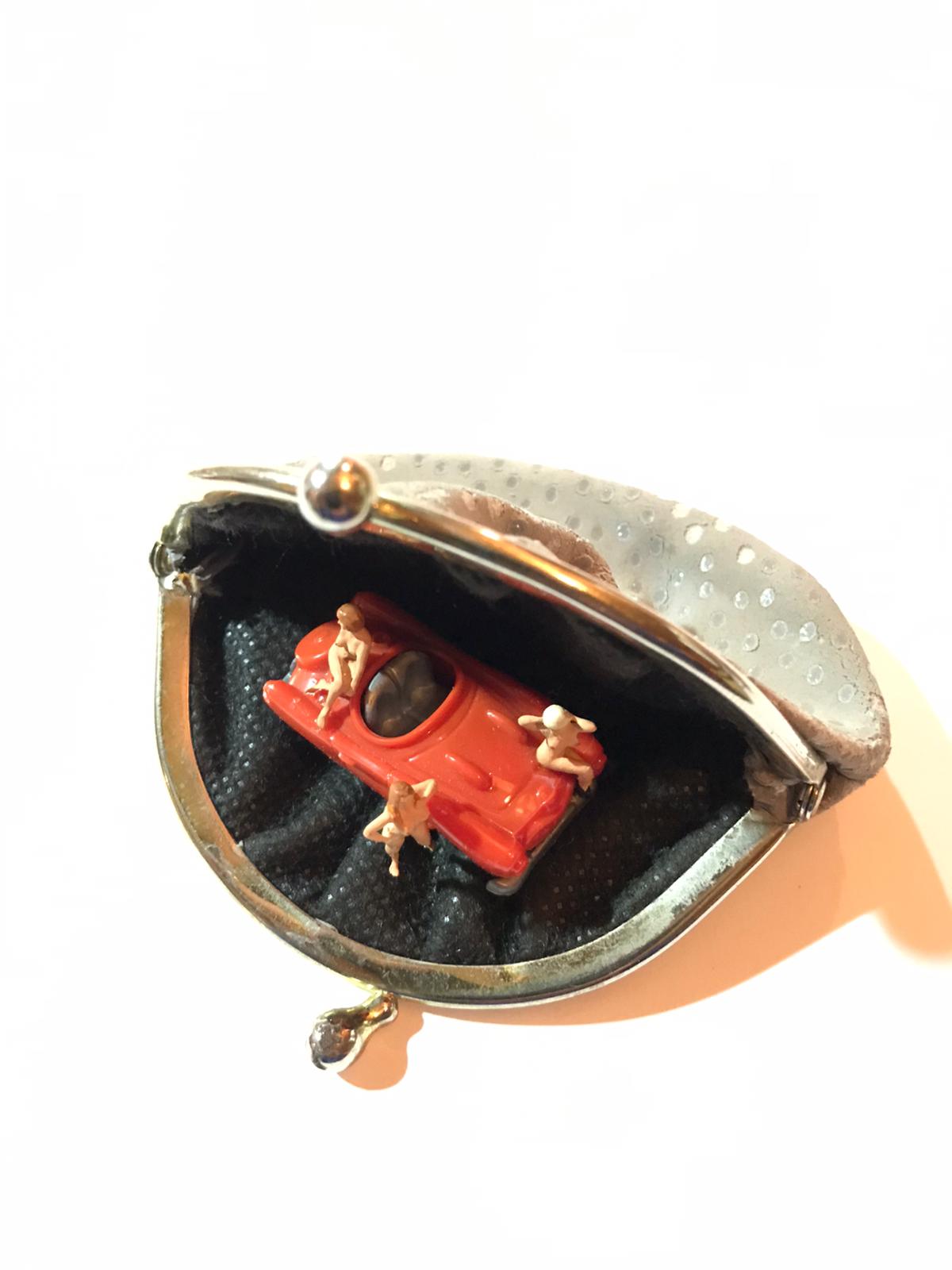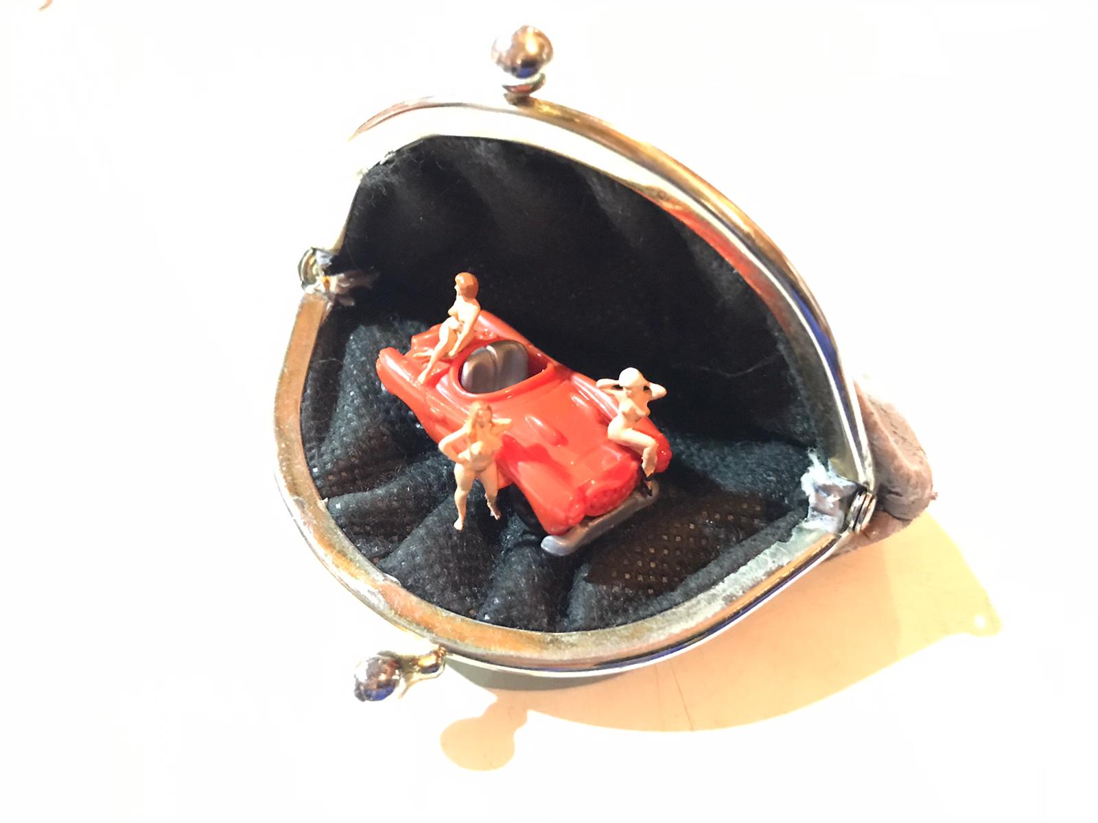 Installation in a wallet. The "Piepshows" were originally made for the art show “Illegallerie” in 2004. Three artists reacted to the concept “illegal”.